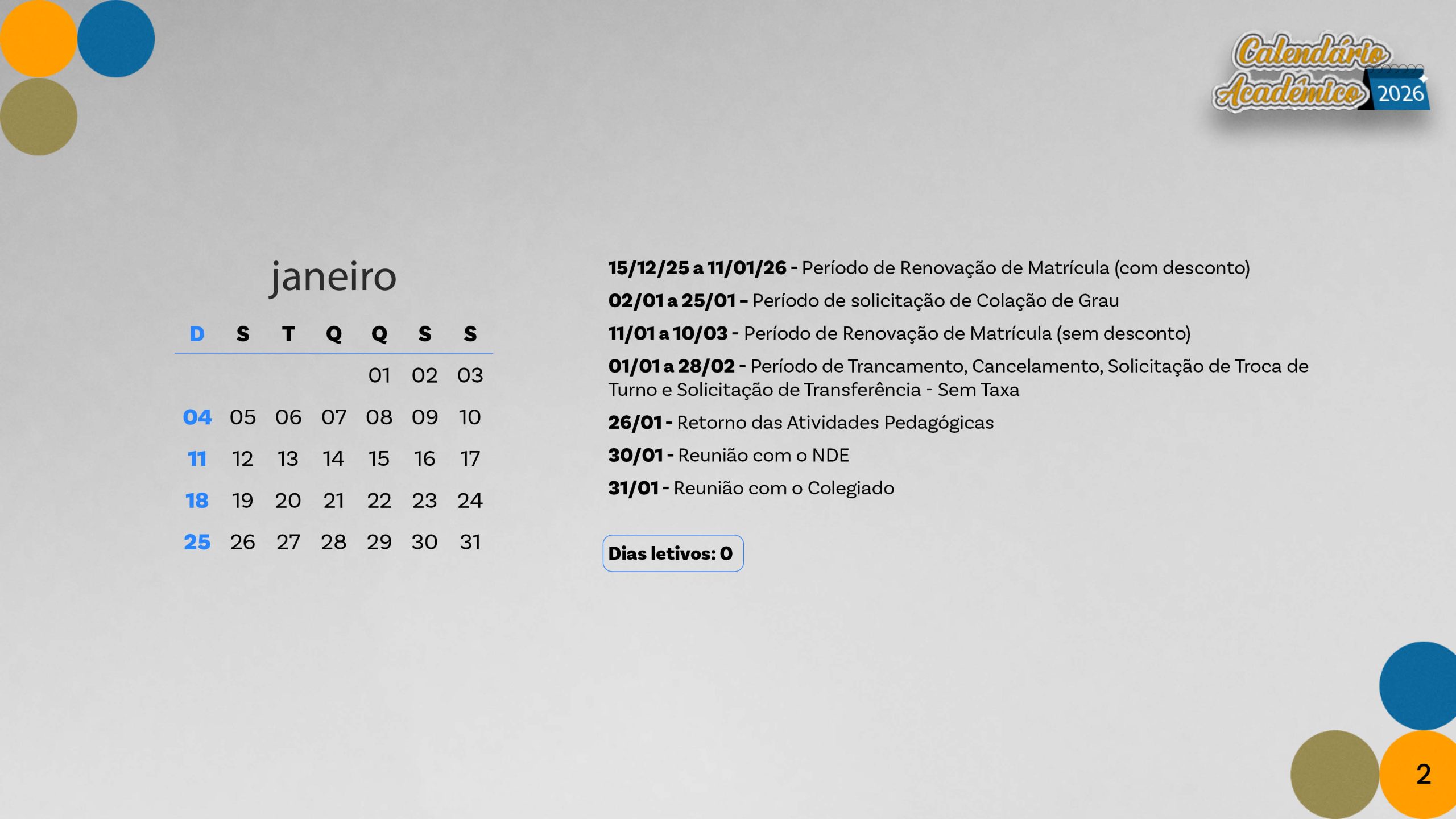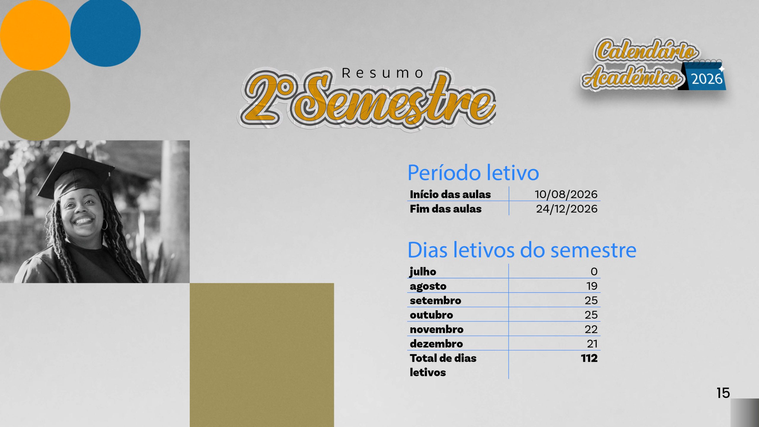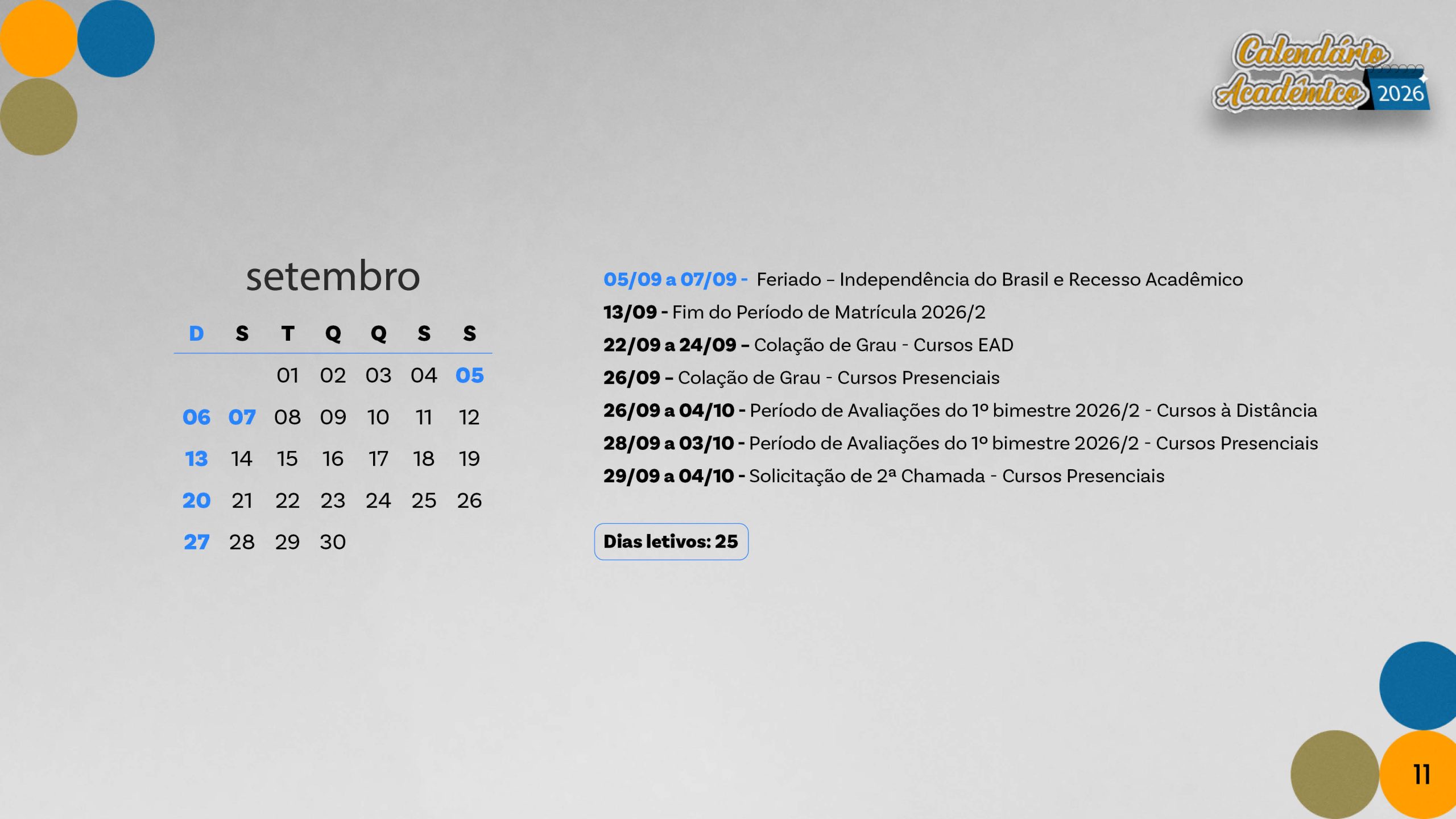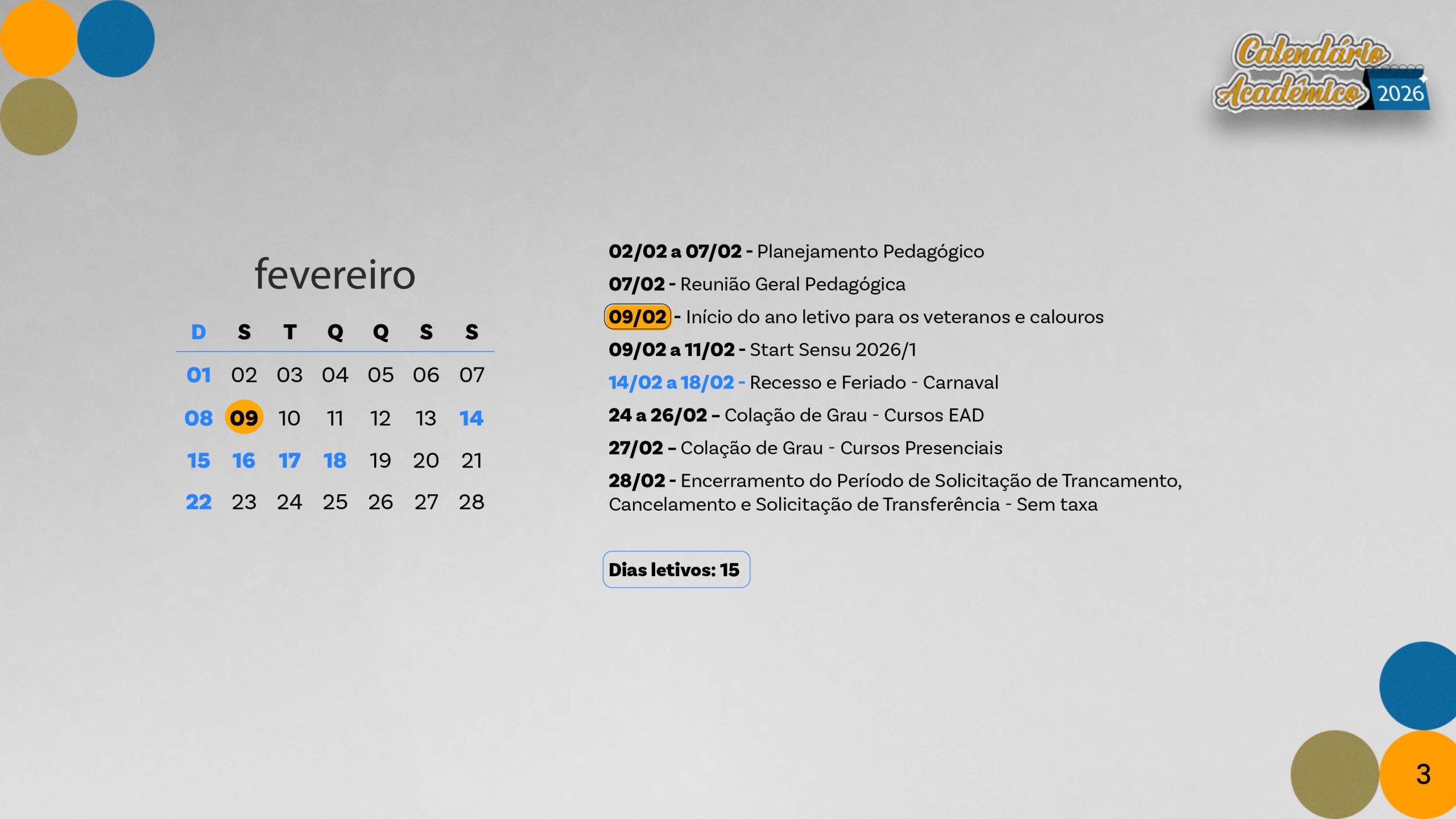 Calendário acadêmico do ano de 2026.