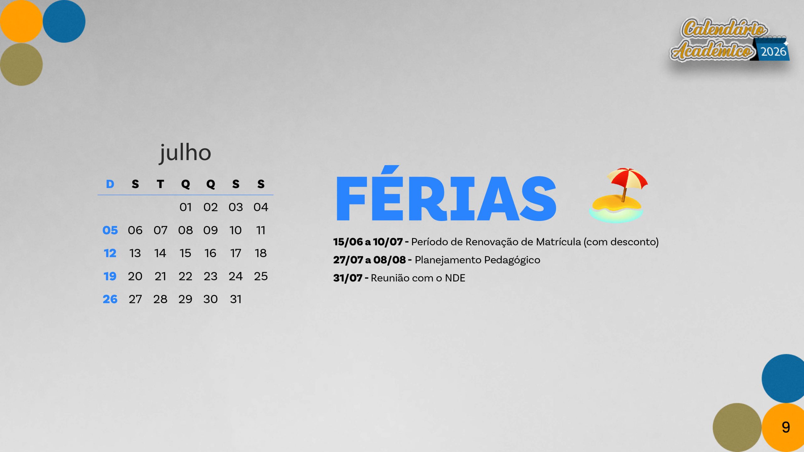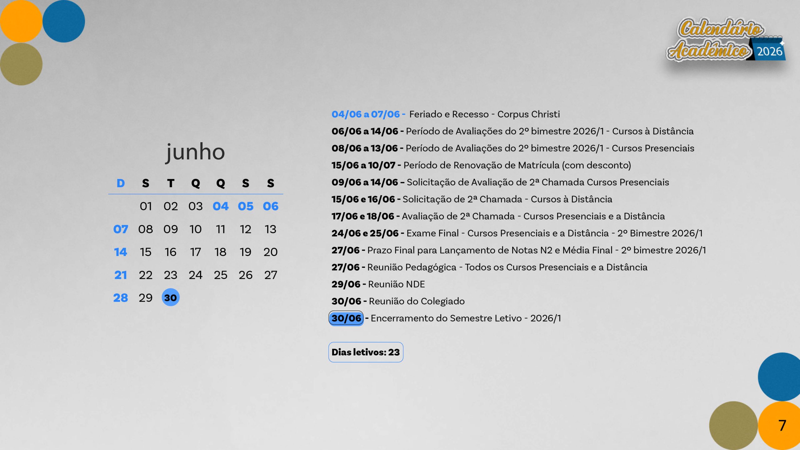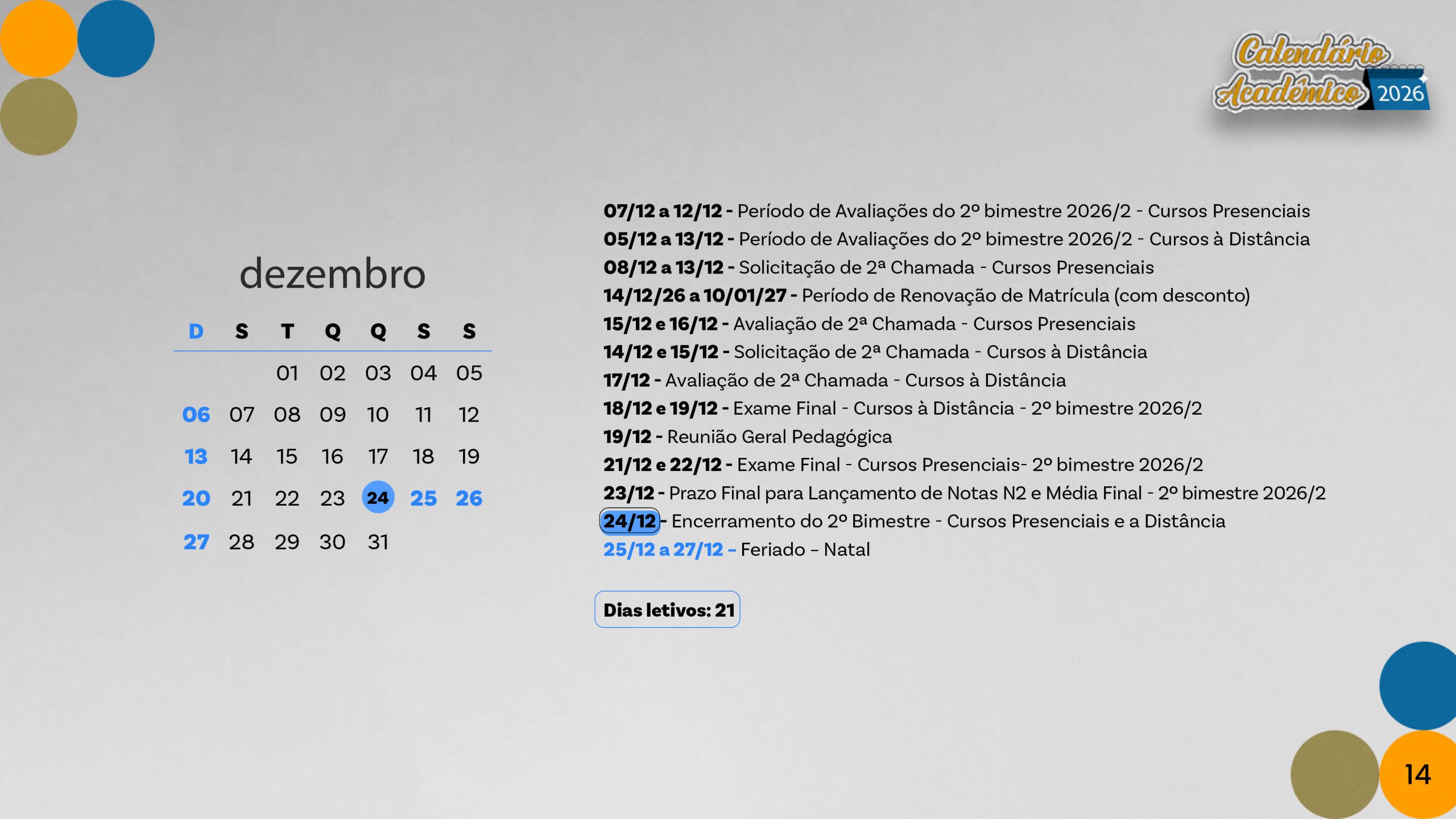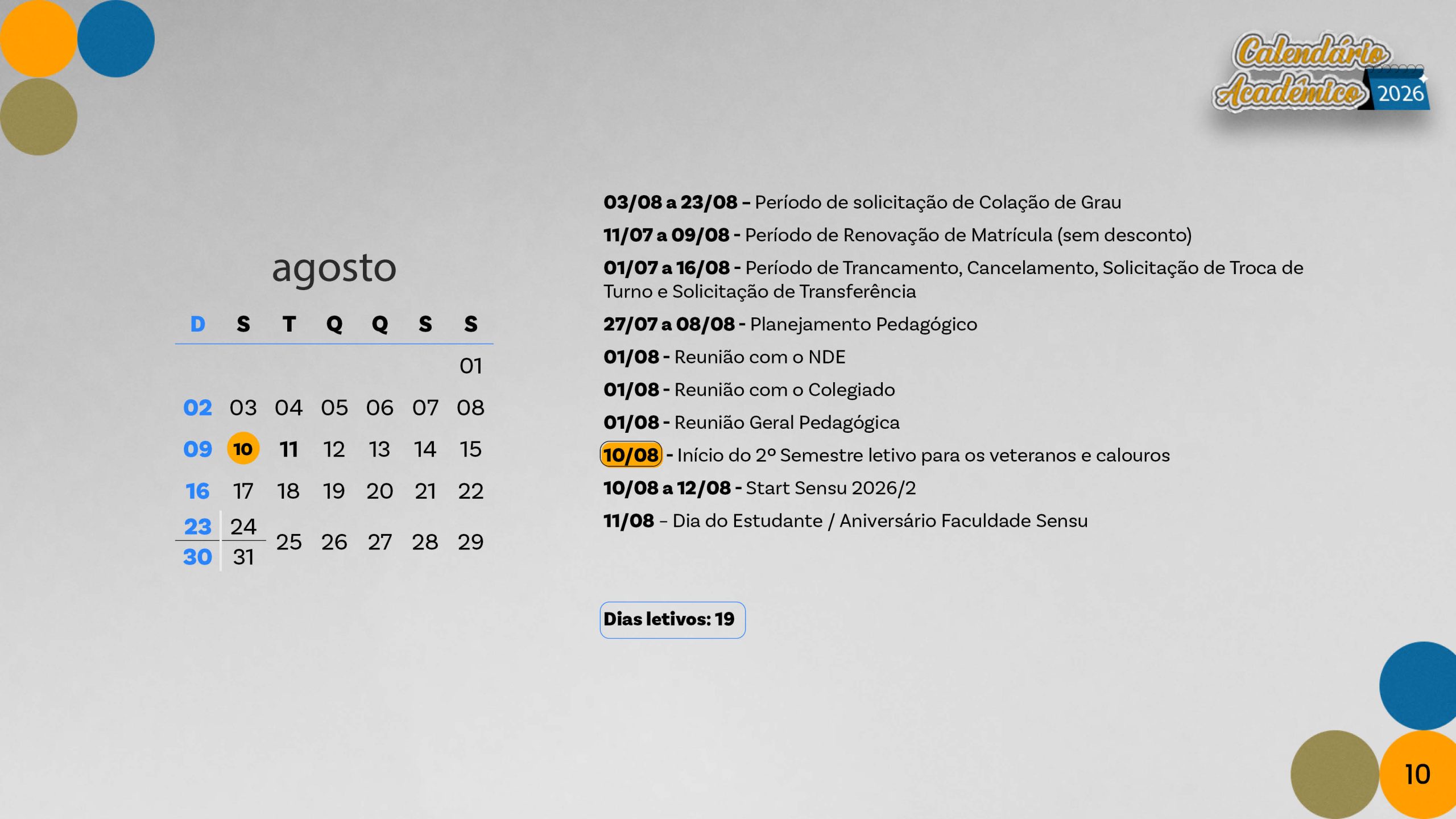 Calendário acadêmico do ano de 2026.