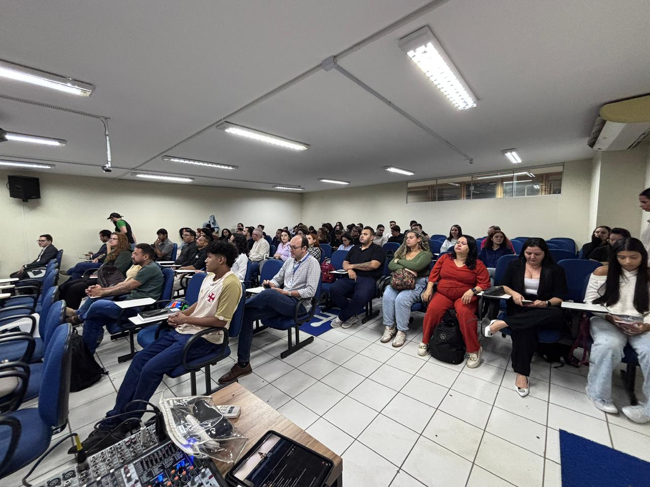 A abertura oficial do semestre contou com as boas-vindas da reitoria e do corpo docente. Na sequência, a Professora Crislaine apresentou o “Grand Finale”, focado no Manifesto Start Sensu 2026. A palestra provocou os estudantes a refletirem sobre a construção do “Profissional Insubstituível”, destacando que, em um mundo automatizado, o diferencial competitivo reside nas competências comportamentais e na visão crítica.